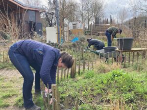 Afgelopen weekend was de vrijwilligersactie NLdoet. Een groep van de Lions Club en enthousiaste buurtbewoners kwamen bij Wijkboerderij Wachterlied helpen met onkruid wieden, de wilgenboog snoeien en aanplanten in de moestuin. Superbedankt voor alle hulp. De biodiverse tuin staat er weer mooi bij.
