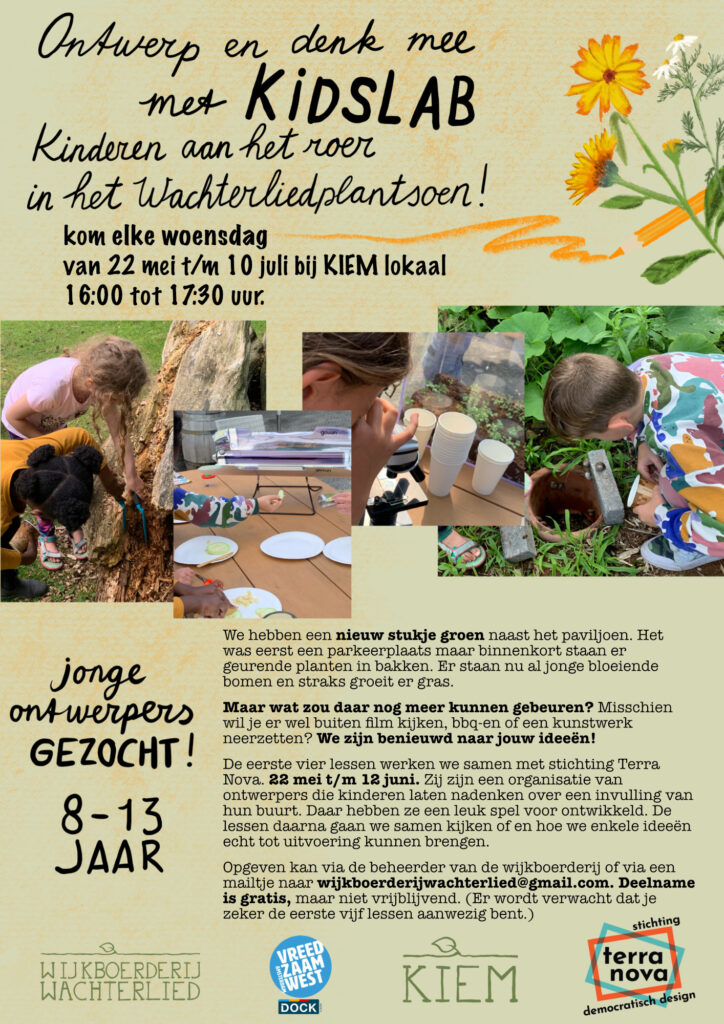 Ook zijn we op zoek naar kinderen tussen de 8 en 13 jaar oud die mee willen denken over de invulling van het nieuw vergroende stukje Wachterliedplantsoen. Interesse? Schrijf je in via wijkboerderijwachterlied@gmail.com